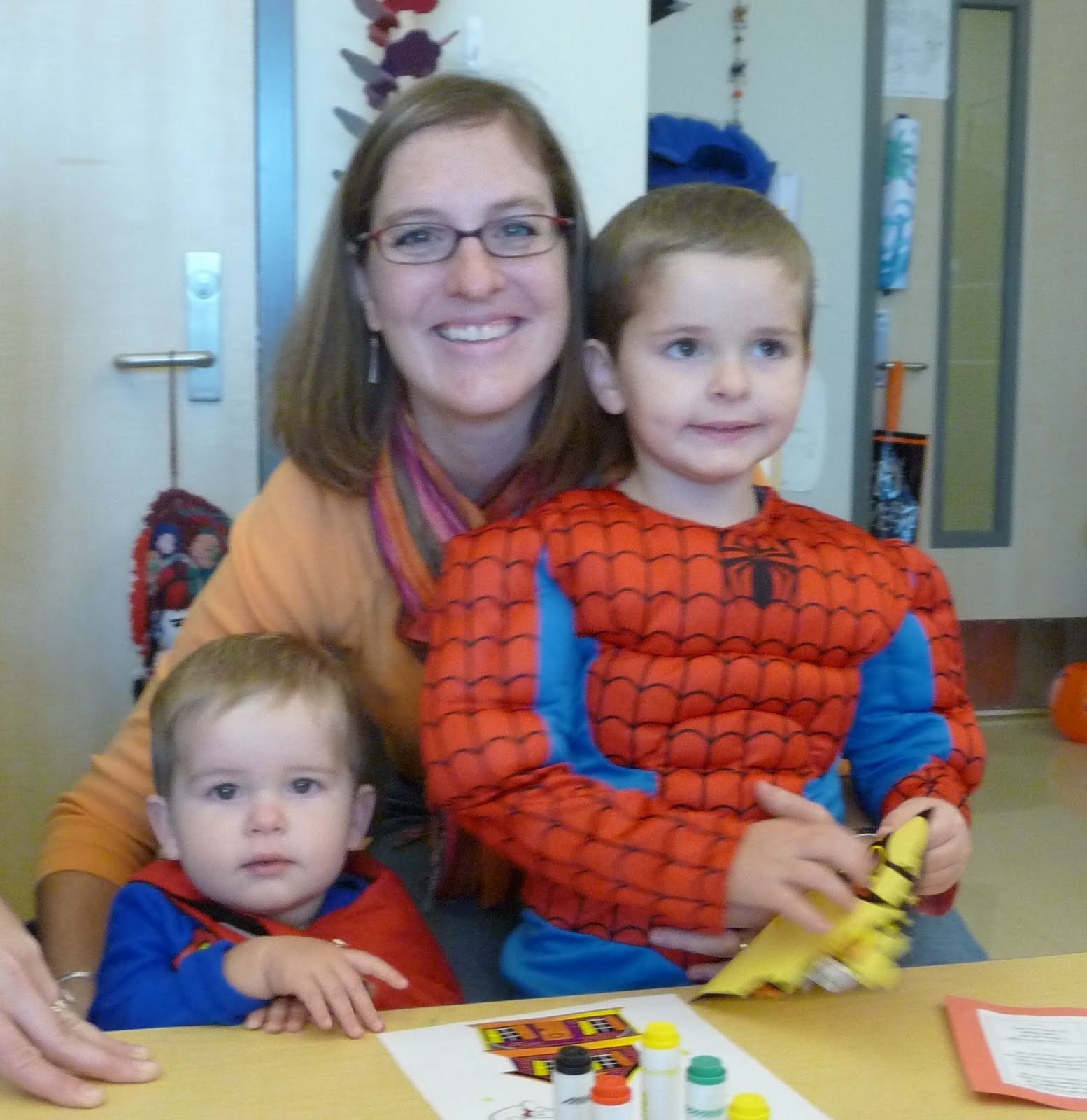 This year for Halloween the kids partied and partied and partied. It was a little out of control - but lots of fun. It started with Tyler's school Halloween Party. Grammy came up and off we went to have a fun time at school. The boys got to play games, eat snacks, and go trick or treating around the school. Sydney also had a school party that I was able to help with. THey had lots of fun. Her favorite was making a Halloween necklace. Then we had a Trunk-or-Treat at church, trick-or-treating at the shopping mall, and trick-or-treating around the neighborhood. Of course - as any good Mother does - I tax the kids on their candy and take all the Twix. :) Sydney dressed up as a cheerleader, Tyler was Spiderman (for the second year in a row - but it was what he really wanted to dress up as) and Brady was Superman. The cutest superheroes and cheerleader ever!!